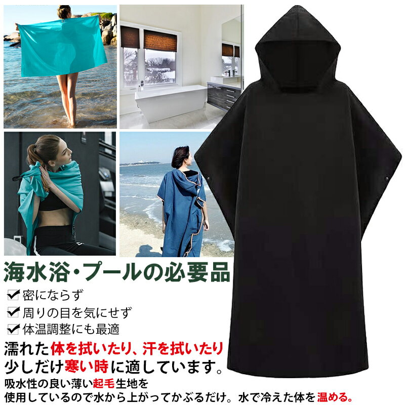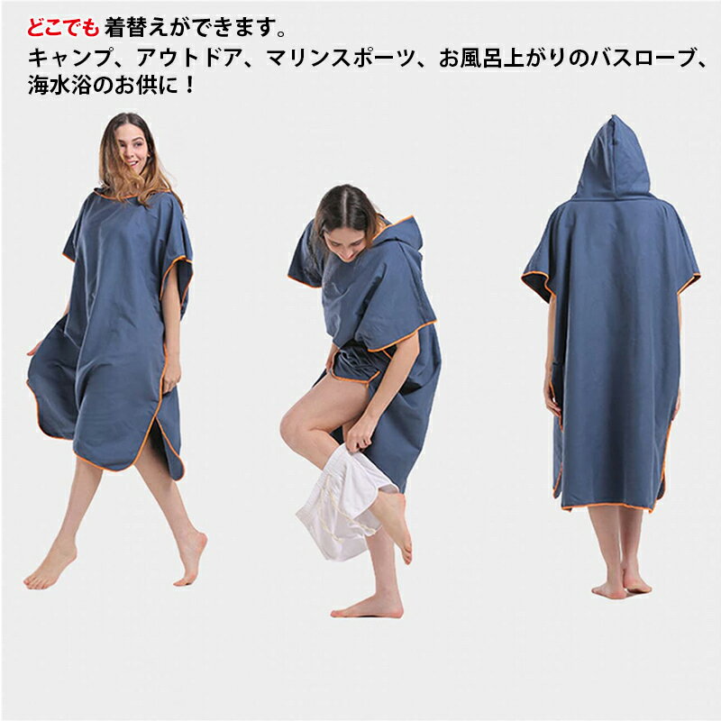 キャンプ、アウトドア、マリンスポーツ、お風呂上がりのバスローブ、海水浴のお供に! 吸水速乾性の肌触りの良いマイクロファイバー生地 短い起毛のマイクロファイバー素材を採用。