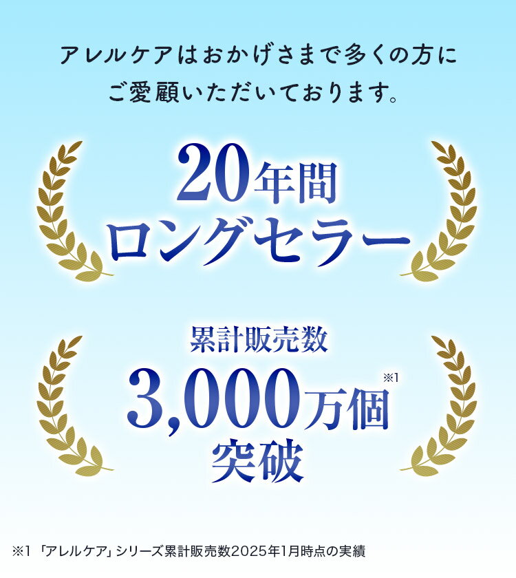 製品仕様 商品名 「アレルケア」60粒パウチ×3個 名称 乳酸菌含有食品 賞味期限 商品裏面に記載 内容量 15.0g(250mg×60粒) 栄養成分表示(2粒)[0.50g]当たり エネルギー…2.0kcal たんぱく質…0.01~0.03g 脂質…0.01~0.03g 炭水化物…0.43g 食塩相当量…0~0.003g ============ 「L-92乳酸菌」…20.7mg※ ※製造時配合(2粒当たり) アレルギー物質(28品目中) – 保存方法 高温・多湿及び直射日光をさけて保存してく