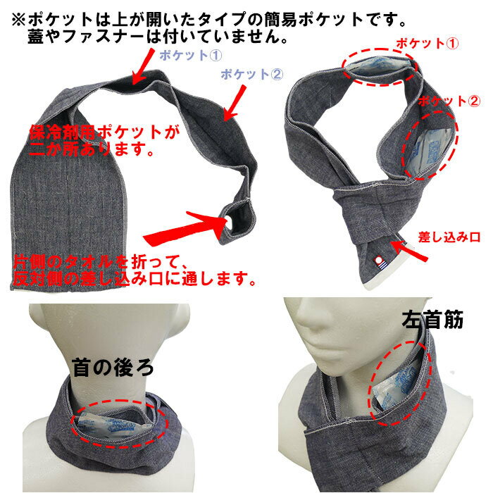 保冷剤を入れるポケットが付いているので、暑い日は冷凍庫で凍らせた保冷剤を入れてのご使用がおすすめです。