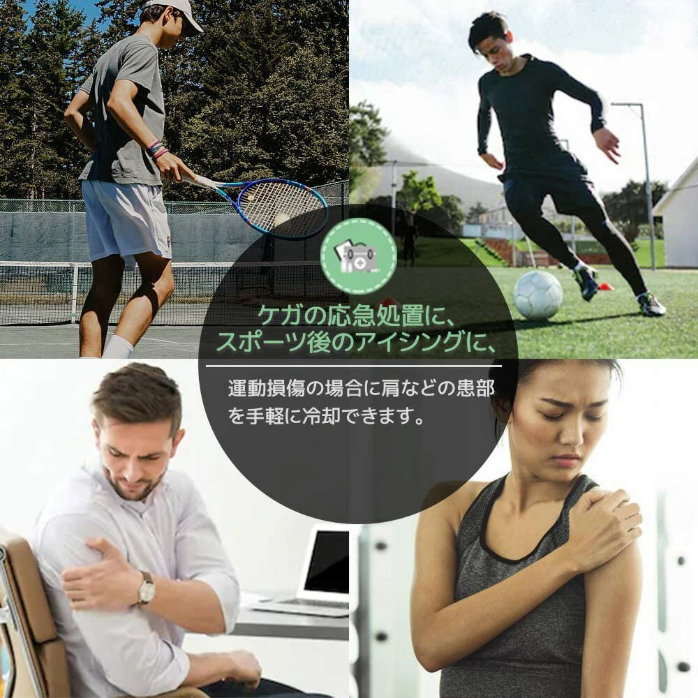 肩用アイシングサポーター特殊な形状なので肩の形にフィットしやすいので肩こりやスポーツ等による痛みや腫れを優しくアイシングしてくれます。