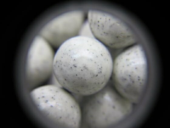 放射性のラジウムを大量に含む温泉沈殿物重晶石(硫酸バリウム)である。