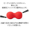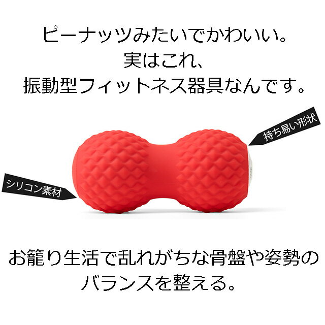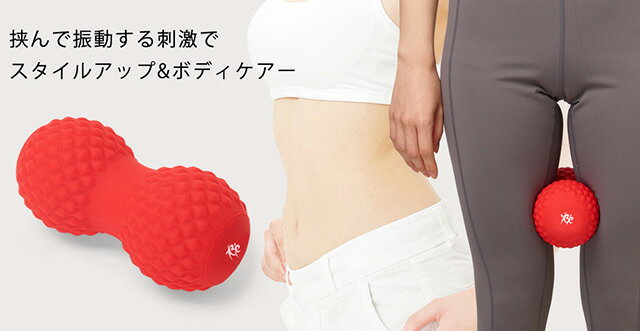 - 本製品の連続使用耐久時間は最高15分間です。 使用開始後、15分間を経過するとタイマーが作動して自動的に電源が切れます。 同じ部位への連続使用時間の目安は約1〜3分間です。 ピーナッツみたいでかわいい。 実はこれ、振動型フィットネス器具なんです。 お籠り生活で乱れがちな骨盤や姿勢のバランスを整える。 立って!挟んで!ぶるぶる! 内転筋への振動により 骨盤周りからお腹周りまでを一気に刺激! シェイプツインボールを挟むことで骨盤が立ちあがり、さらにその状態で、振動を与えることで内転筋から骨盤バランスを保つ筋肉とお腹周りの筋肉まで連動して刺激が入るようになるので理想的な姿勢に導きスタイルアップが目指せる! 振動させることでジムのマシンで鍛えられる筋肉と同じ筋肉を刺激! ※マシンと同等の結果を得られるわけではございません。 気になるところをマッサージ デジタル生活で固まった 上半身をほぐして緩めてスッキリ 長時間の座り仕事やスマホ操作は首や肩、胸、背中の筋肉も 固まりがちです。 シェイプツインボールの振動マッサージで 緩める習慣をつけましょう。 お好みの振動レベル(5段階)でマッサージ していただけます。 首肩まわりを中心とした上半身をスッキリとリセット 1.首筋から肩、鎖骨の下に沿って優しく振動を使ってほぐします。 2.鎖骨下のリンパに沿って優しく振動を使ってほぐします。 3.前のめりの姿勢で詰まりがちな腕の付け根や脇下を振動で緩めてあげましょう。 4.猫背になって緊張していた背中もゆっくり振動を使って緩めてあげましょう。また背骨の脇にある脊柱起立筋をマッサージすることで自律神経を整えることも期待できます。 ※同じ部位への連続使用時間は1〜3分間です。 座りっぱなしで浮腫みがちな下半身のリカバリーにも 1.ふくらはぎに軽くあて浮腫み対策。 2.詰まりがちな膝に軽くあてて優しく刺激しましょう。 3.両手で支えてコントロールしながらお尻の筋肉を緩めると腰痛予防になります。 4.ボールの丸みに足裏をフィットさせゆっくり転がしながら心地よく振動させましょう。 ※注意 下肢に使用する場合は強く圧をかけたり刺激しないようにしてください。 ※同じ部位への連続使用時間は1〜3分間です。 充電のタイミングと方法 使用中に振動レベルランプが点滅を始めたら、充電残量が少なくなっています。 使用を中止し、電源をOFFにしてACアダプタープラグを本体のACアダプタープラグ差込口に、まっすぐ奥まで差し込んでください。 20%充電されるごとに、振動レベルランプが1個ずつ点灯します。 「シェイプツインボール」本体サイズ