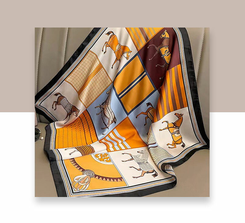 - 上品で洗練されたデザインのシルク調スカーフ。
