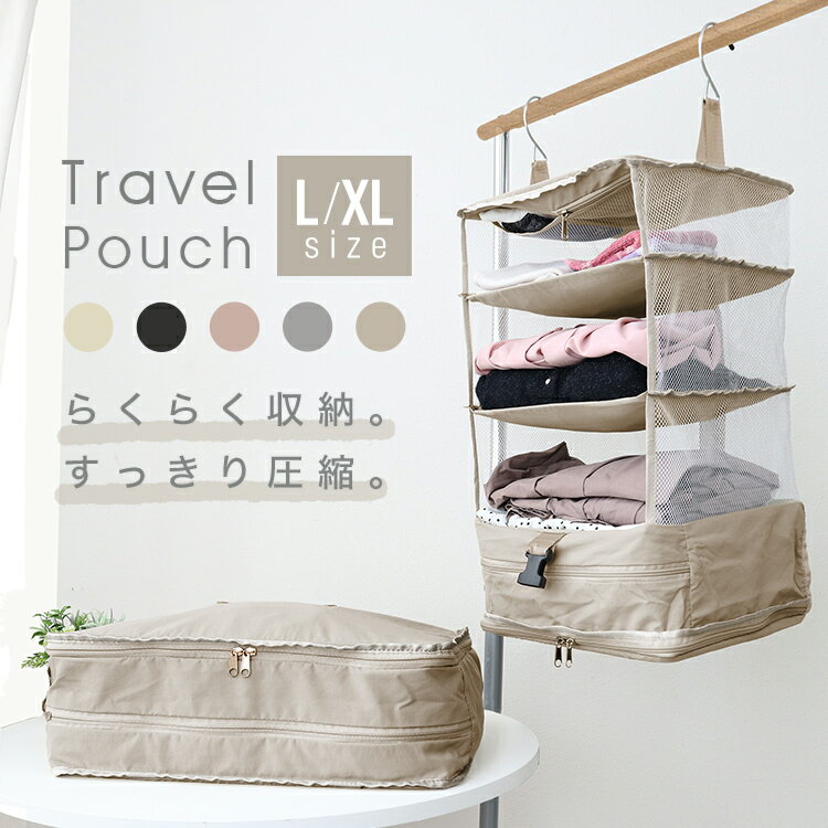 \簡単圧縮!吊り下げて収納できる♪/ 旅行や出張前のパッキングで大活躍! 圧縮ポーチでかさばる衣類をコンパクトに収納できます。