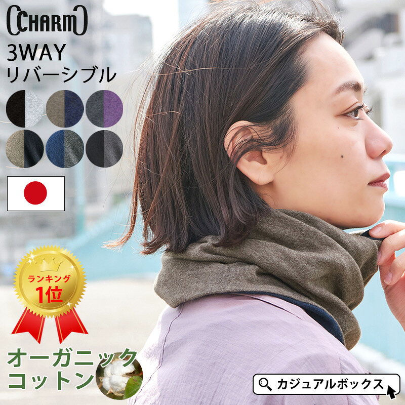 日本制造 CHARM Tornado R/V 平纹有机棉围脖 | 男女通用 四季皆宜 春夏秋冬 冬季款 100%棉 防紫外线 颈部遮盖 围脖 颈部防护 睡眠用 外出 室内 时尚 颈部 空调 防晒