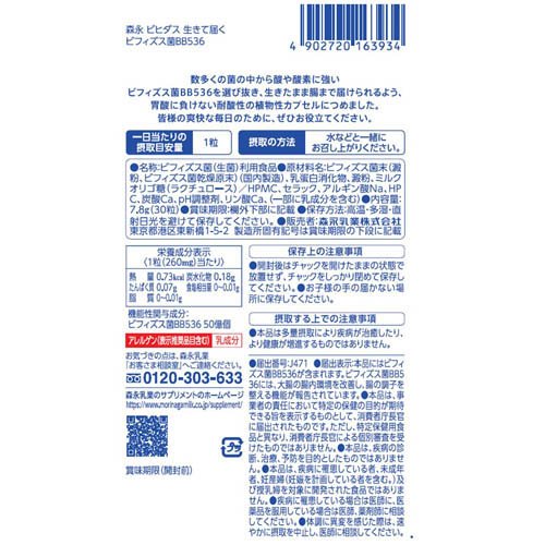お店TOP>健康食品>酵素・酵母・乳酸菌類>乳酸菌類>ビフィズス菌>ビヒダス生きて届くビフィズス菌BB536 30日分 (30粒入×5セット)商品区分:機能性表示食品(J471)【ビヒダス生きて届くビフィズス菌BB536 30日分の商品詳細】●腸に生きて届くビフィズス菌BB536のサプリメント。●サプリメント形状のため、持ち運び可能で手軽にビフィズス菌を摂取できます。