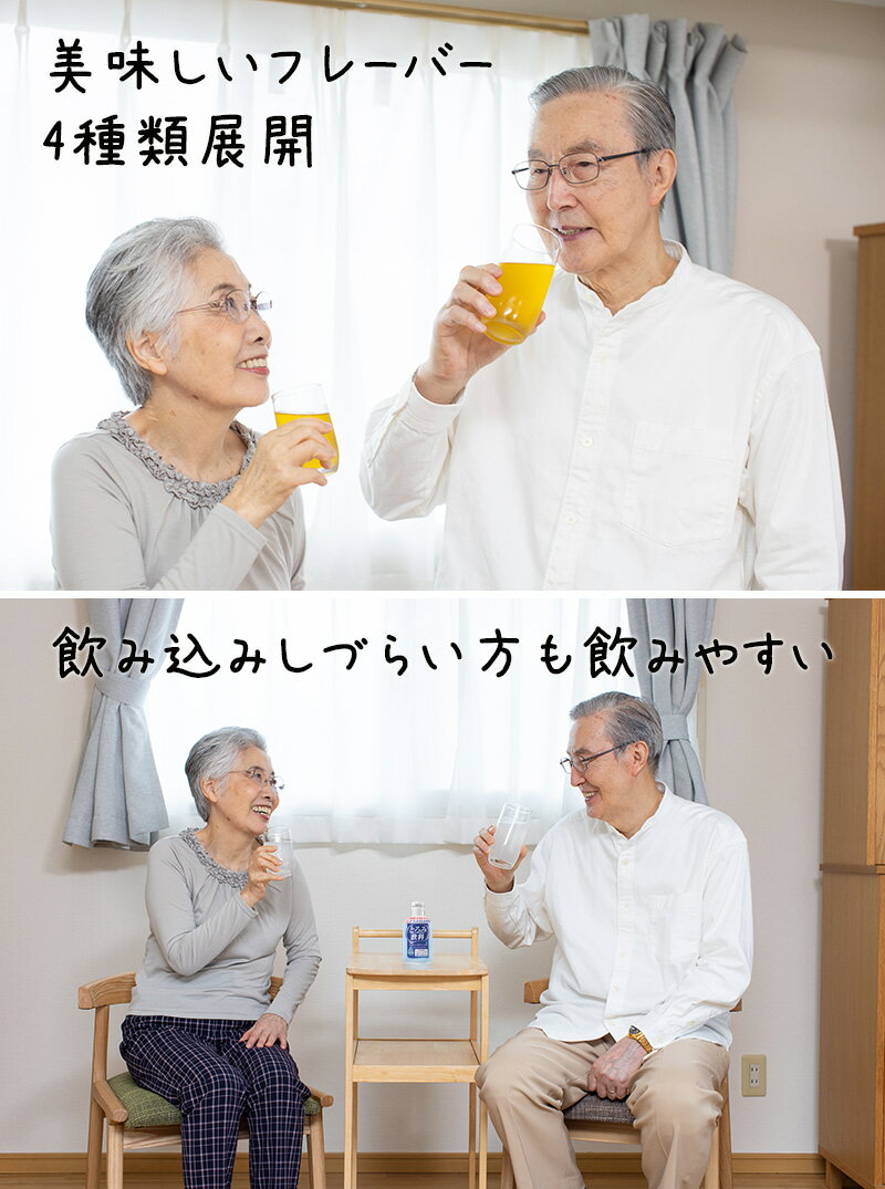 また、飲む都度、とろみ付けをするのは時間もかかる上に、とろみ剤でダマになったり、味が変わってしまったり、なんてことありませんか? この「とろみ飲料」はとろみ付け作業はいりません! 「介護する方の負担を減らし、見守る時間を増やしたい。