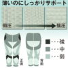 - そけい部:前面をサポートすることで股関節の動きを補助。脚上がり快適に。