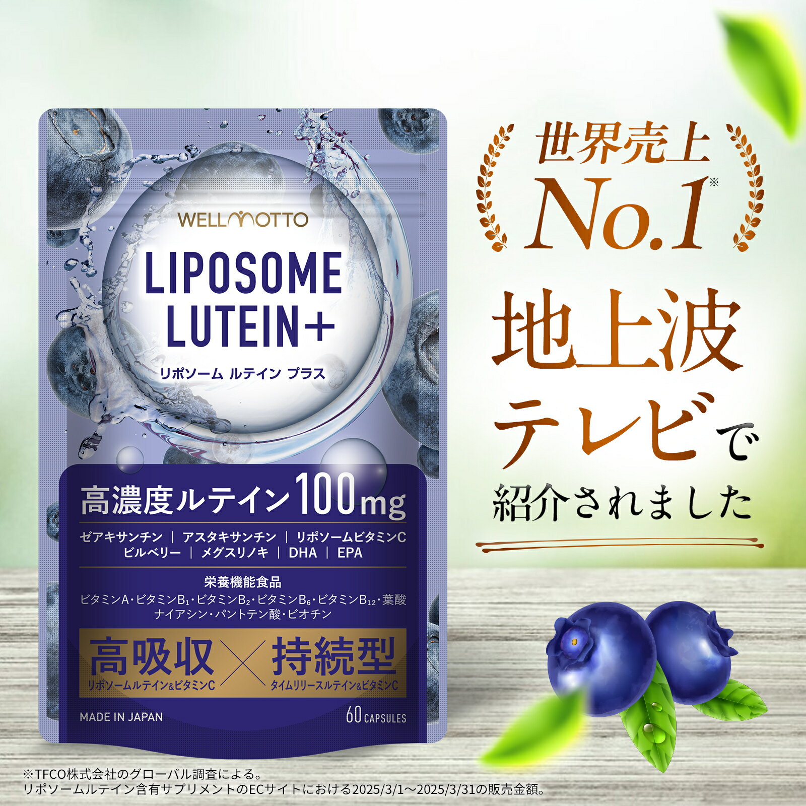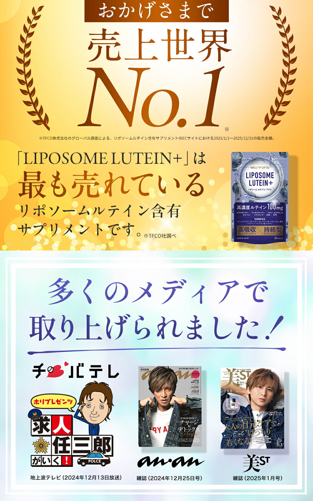 売上世界No1 LIPOSOME LUTEIN+は最も売れているリポソームルテイン含有サプリメントです。