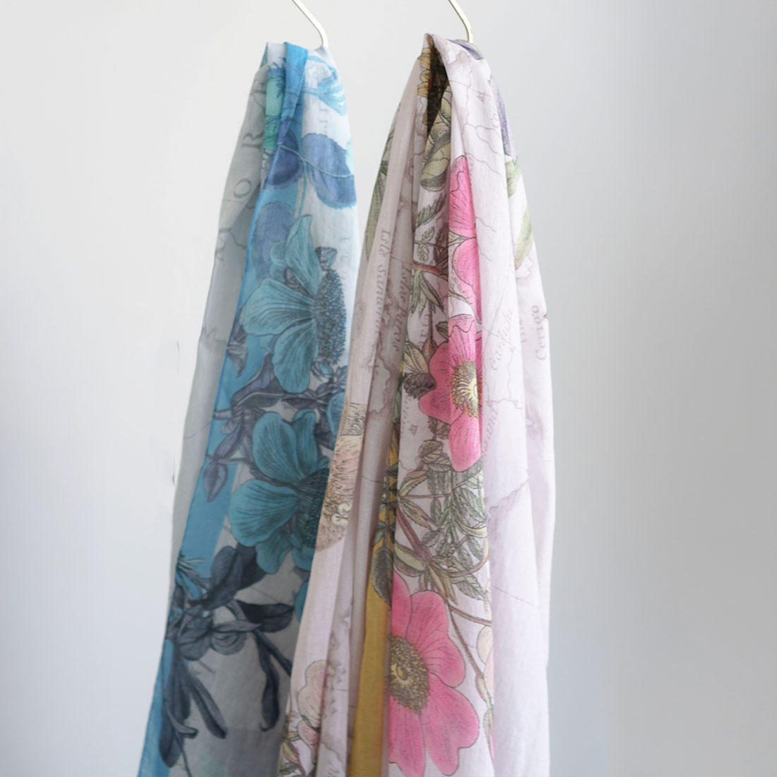 Detail ふわりと空気をまとったような 軽やかなストールです。 やさしく透ける薄手の素材で 涼しげな印象に仕上げています。 コットン100%ならではの やわらかく心地よい肌ざわりです。 季節の端境期にちょうどよく 軽く羽織るだけで様になります。 夏は冷房対策としても さらっと取り入れやすい一枚です。 小さくたためて持ち運びやすく バッグにもすっきり収まります。 四隅のフリンジがさりげなく 軽やかなアクセントに。 大判サイズなので 巻き方のアレンジも自在に楽しめます。 ふんわりとした空気感が魅力の 大人のための上質ストールです。