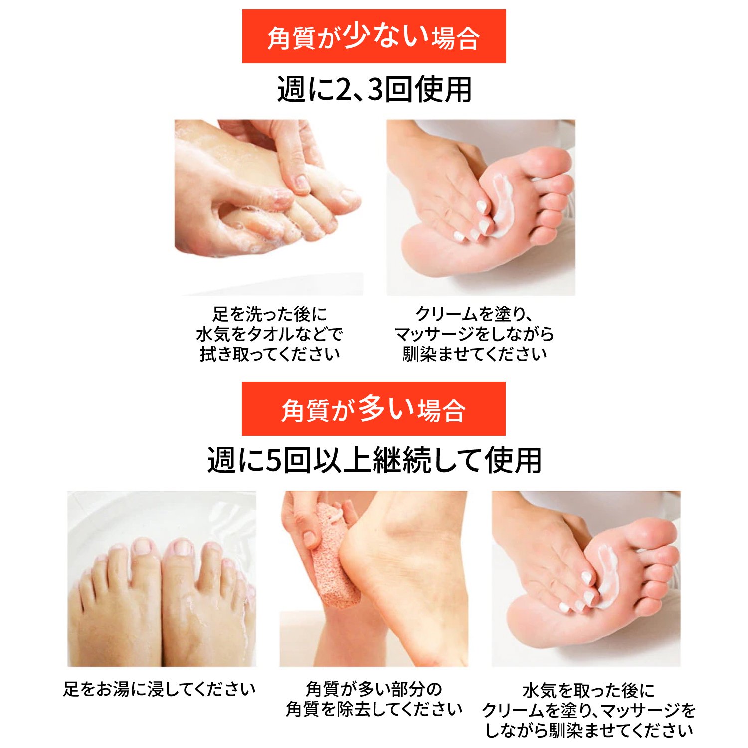 - 主な潤い成分→尿素・ローヤルゼリーエキス・プロポリスエキスなど モイスチャー(赤) 高保湿なのにベタつきにくく、カサカサかかとしっとり・つるつる