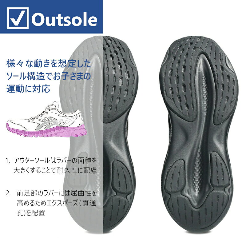 ↓こちらもおすすめ アシックススポーツ工学研究所のデータをもとに作製したキッズ専用ラストを採用。 シンプルさと履き心地にこだわったクッションモデル。