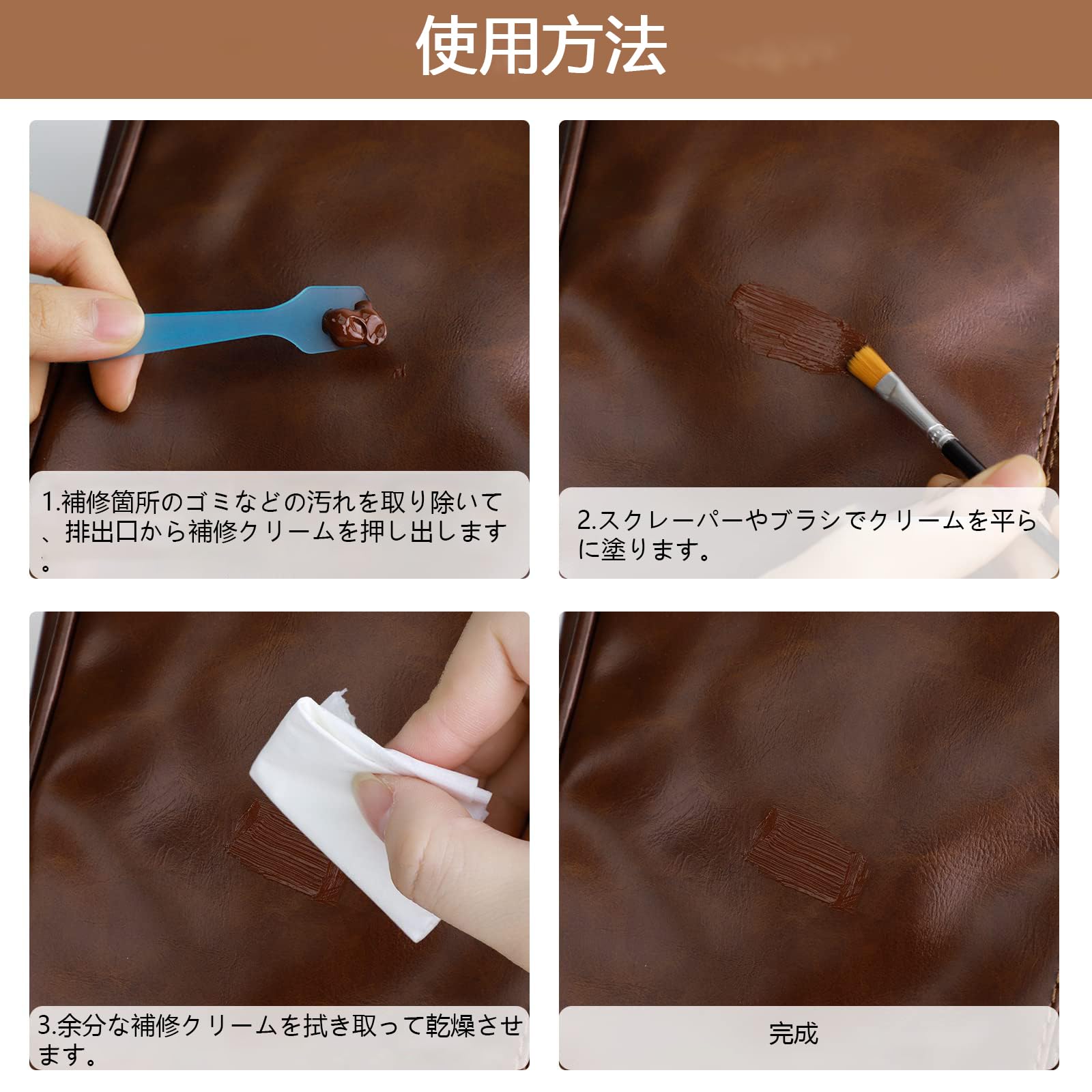 使用範囲が広い革補修キットは、カーシート、ソファ、ボートシート、自転車シート、オフィスチェア、ベルト、バッグ、財布、靴などの革やビニール家具の修理に使用できます。