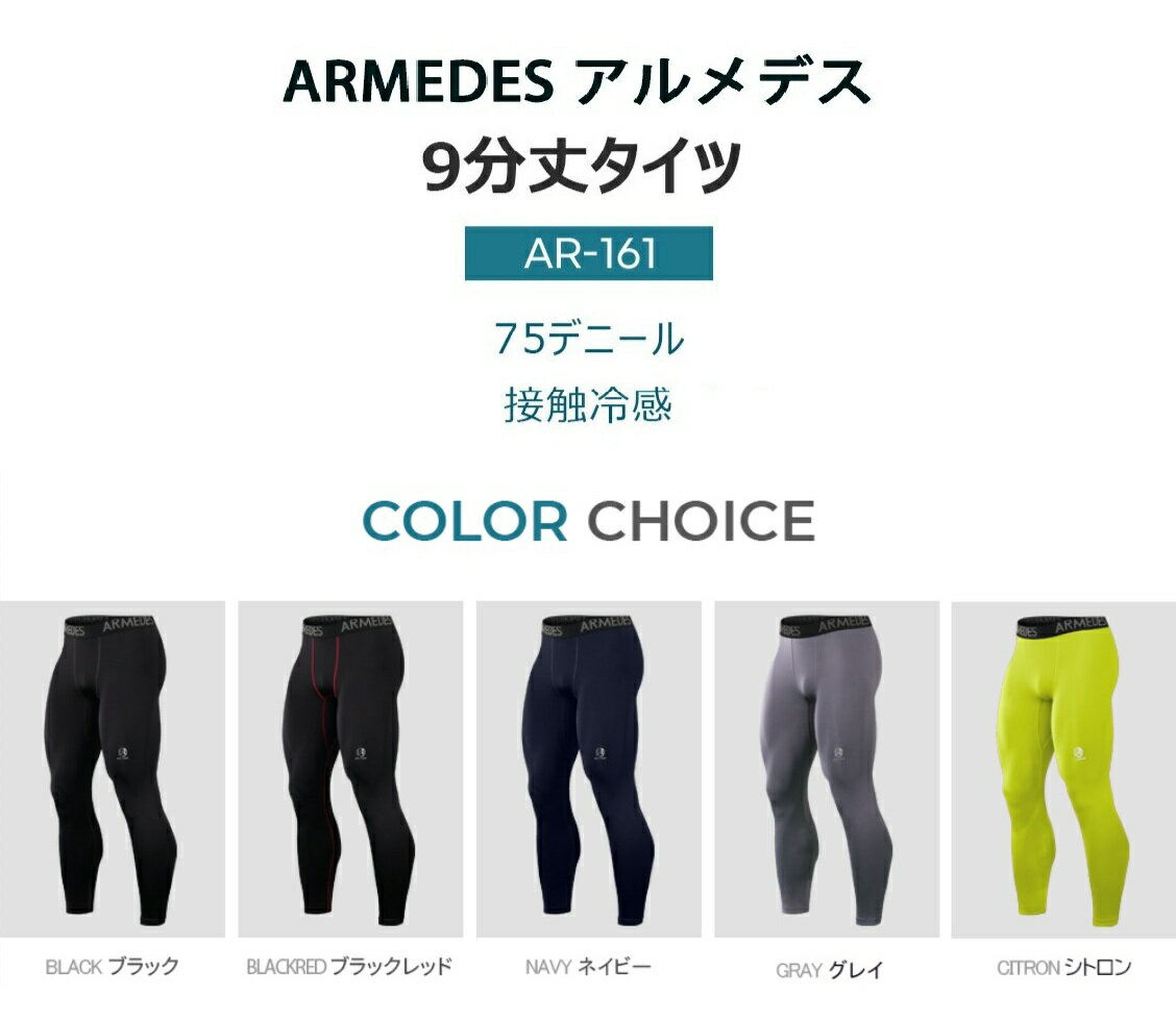 ARMEDES アルメデス 接触冷感 テックフィット 9分丈タイツ コンプレッション ボトムス 前閉じ タイツ メンズ オールシーズン インナー ロングタイツ M-XXLは、アクティブなライフスタイルをサポートするために設計された高機能ウェアです。このタイツは、接触冷感技術を採用しており、運動中でも肌の表面温度を快適に保ちます。