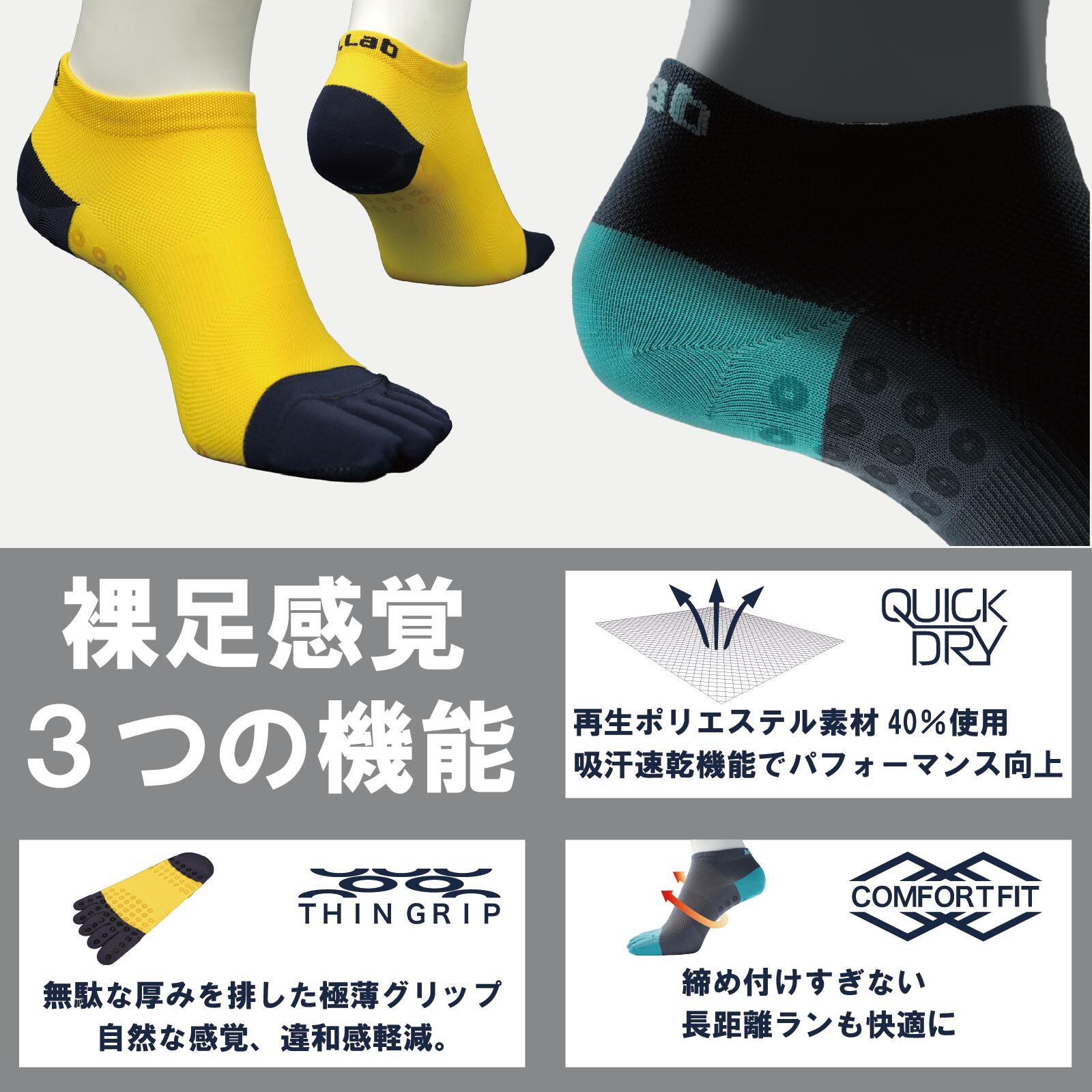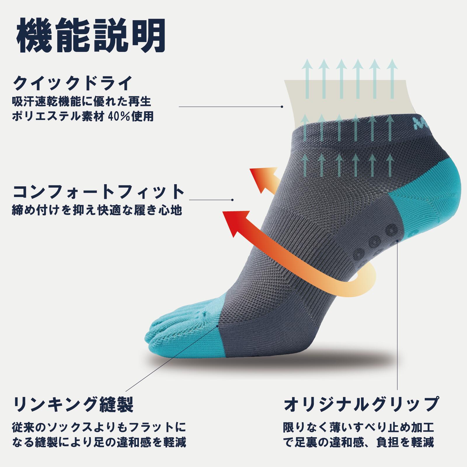 商品詳細 メーカー M.Lab(ミムラボ) カテゴリー 靴下 スポーツ 陸上 ランニングソックス カラーソックス 男女兼用 五本指ソックス マラソン 薄型 裸足 商品名 五本指 超薄型ショート丈ランニングソックスM502,M503 素材構成、サイズ、カラー 素材構成ポリエステル・ナイロン・ポリウレタン 吸汗速乾機能に優れた再生ポリエステル 素材を約40%使用。