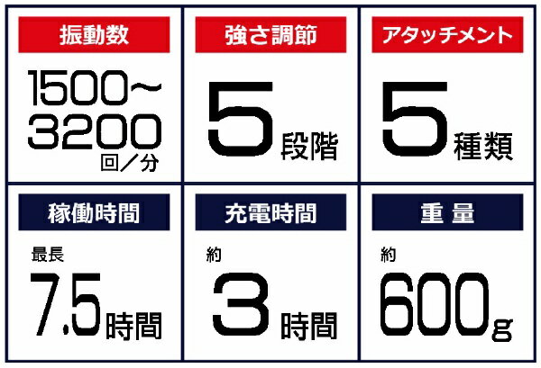 最大約3,200回/分のパワフル振動。独自の技術により振動軸を安定させ、高性能ブラシレスモーターを搭載することで静音性とブレないパワフルさを叶えました。