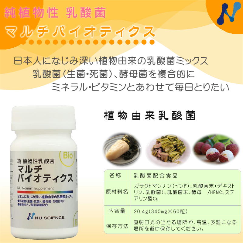 商品説明名称乳酸菌配合食品 内容量20.4g(340mg×60粒)原材料ガラクトマンナン、乳酸菌末(デキストリン、乳酸菌)、乳酸菌末、酵母 /HPMC、ステアリン酸Ca賞味期限 製造より2年保存方法 直射日光の当たる場所や、高温、多湿になる場所を避け保存してください区分 健康補助食品製造国 日本製造者株式会社ニューサイエンス京都市中京区釜座通三条上ル突抜町809番地広告文責有限会社ケイエスティ073-455-0918。