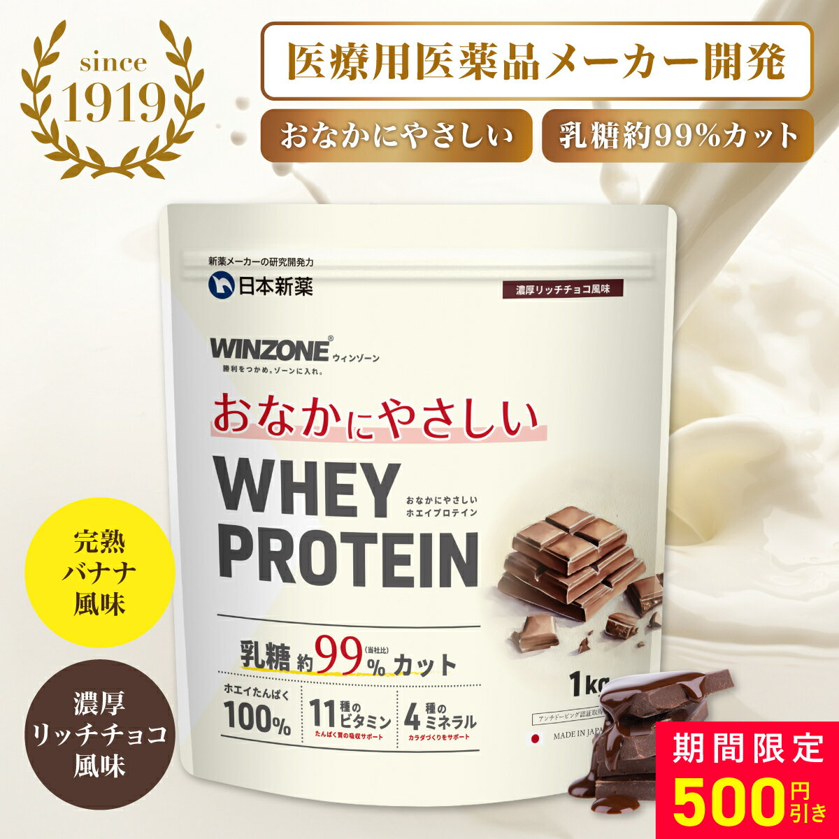 WINZONE 温和易消化的乳清蛋白 1kg 试用装3袋套装 熟香蕉味 浓郁巧克力味 蛋白粉 乳清蛋白 WINZONE 日本新药